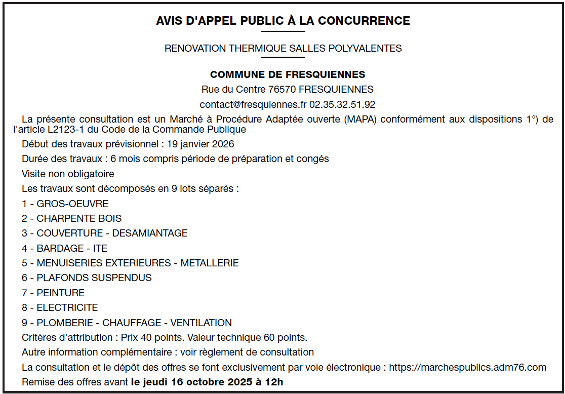 Marché public de travaux : rénovation thermique des salles polyvalentes
